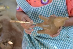 Each artisan hand sculpts each piece using terracotta by first molding the clay into an elephant shape. The terracotta is then sanded down and left to dry in the sun. Once the moisture has dried, the elephant is fire-glazed to create a waterproof finish.